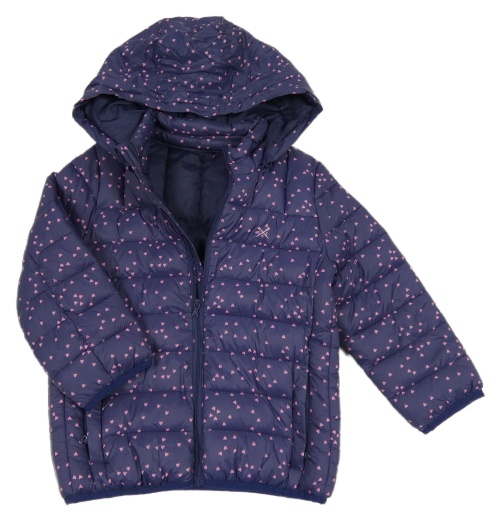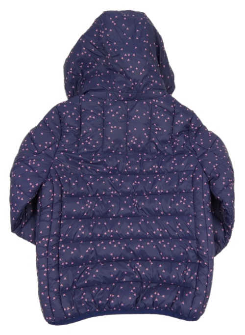 Tmavomodrá šušťáková zateplená bunda so srdiečkami a kapucňou