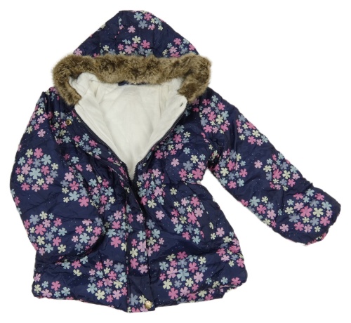 • Tmavomodrá kvetovaná prešívaná šušťáková zimná parka s kapucňou s kožešinou JOMAKE