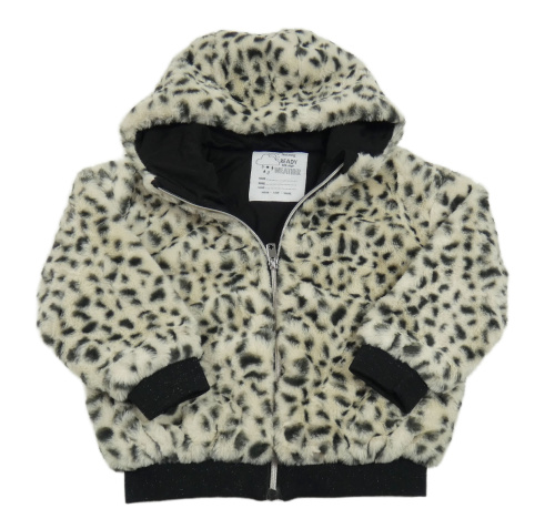 Smetanovo-černý vzorovaný kožešinový podšitý bomber s kapucňou Nutmeg