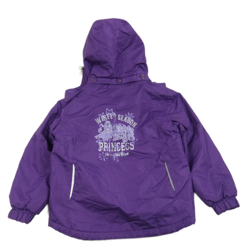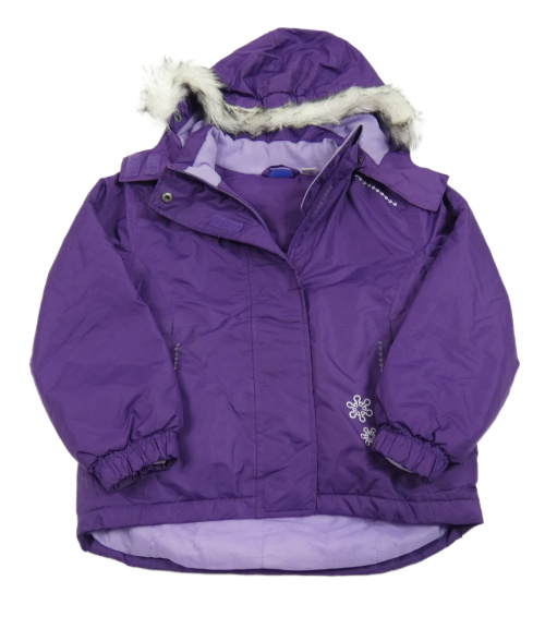 Fialová šušťáková zimná bunda s nápisom a kapucňou Lupilu