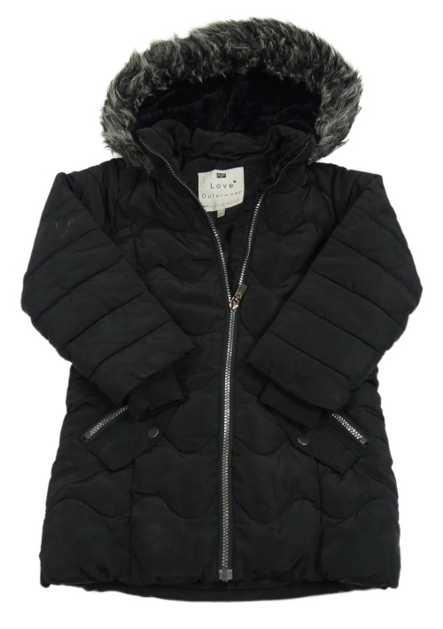 Čierny šušťákový prešívaný zimný kabát s kapucňou s kožešinou F&F