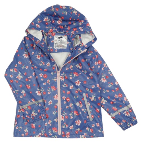 Modrá nepromokavá bunda s kvietkami a kapucňou lupilu