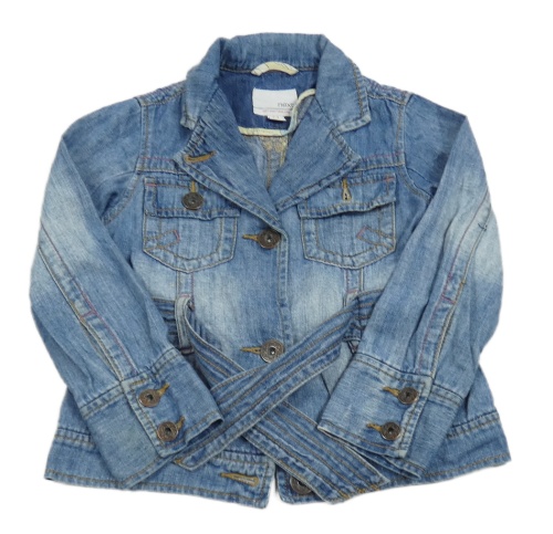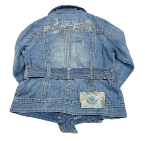 Modrý riflový kabátek s výšivkami a opaskom Next