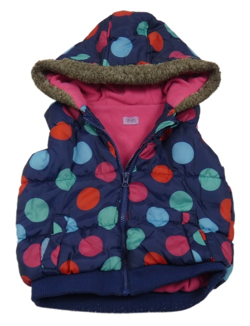 Tmavomodrá bodkovaná á šušťáková zateplená vesta s kapucňou F&F
