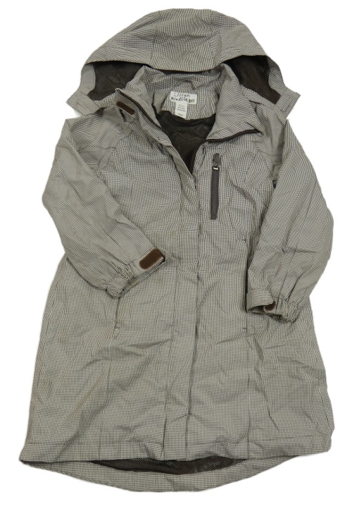 Hnedo-biely vzorovaný šušťákový jarný kabát s kapucňou