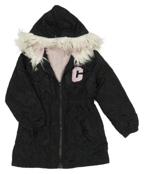 Čierna šušťáková zateplená bunda s písmenem a kapucňou