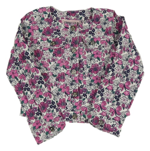 Bílá crop bunda riflového vzhledu s kvetmi a motýlikmi Freestyle