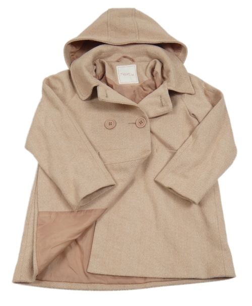 Pudrový vzorovaný flaušový podšitý kabát s kapucňou Next