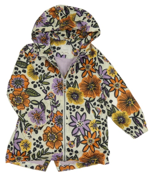 Smotanová šušťáková jesenná parka s kvetmi a lístečky a kapucňou Next