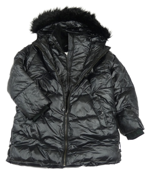 Čierny šušťákový zimný kabát s kapucňou s kožešinou M&S