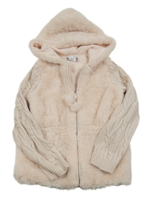 Svetloružová chlpatá podšitá prepínaci mikina s pletenymi rukávy a kapucňou