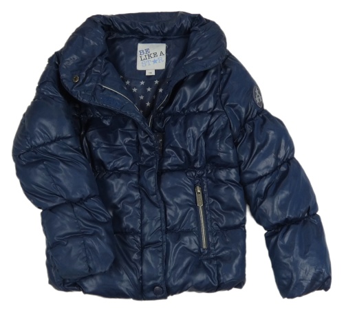 Tmavomodrá prešívaná šušťáková zimná bunda s nášivkou POCOPIANO