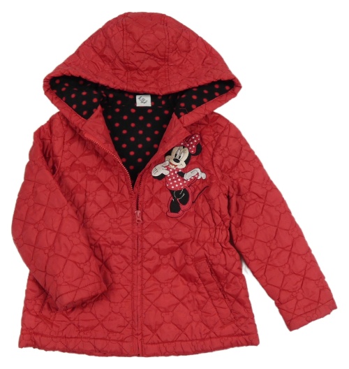 Červená prešívaná šušťáková zateplená parka s Minnie a kapucňou Disney