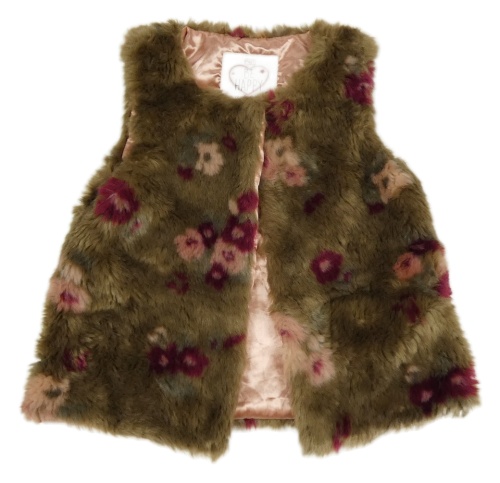 Hnedá kožušinová podšitá vesta s kvetmi F&F