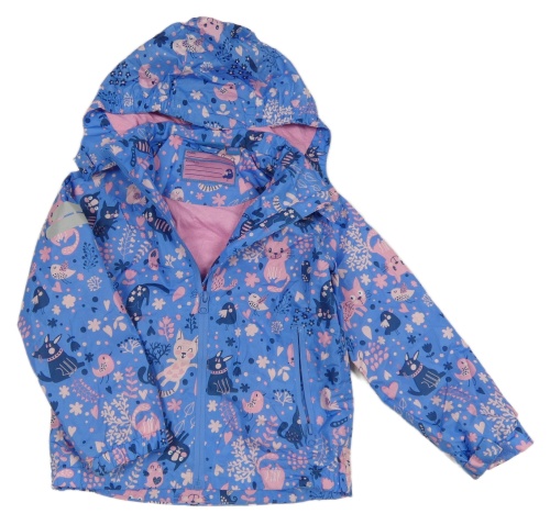 Modrá kvetinová šušťáková jarná funkčná bunda so zvieratkami a kapucňou Impidimpi