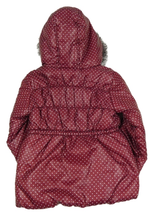 Tmavoružová šustáková zimná parka s bodkami a kapucňou