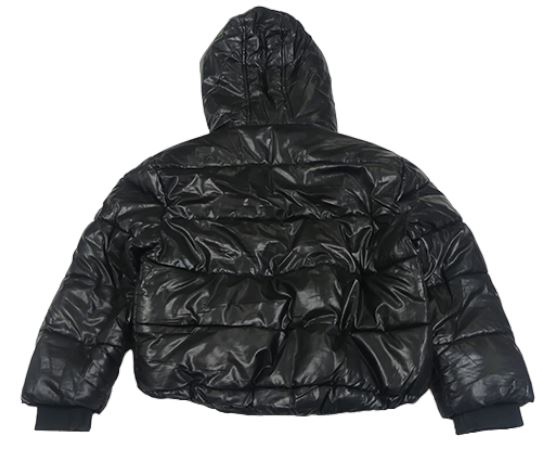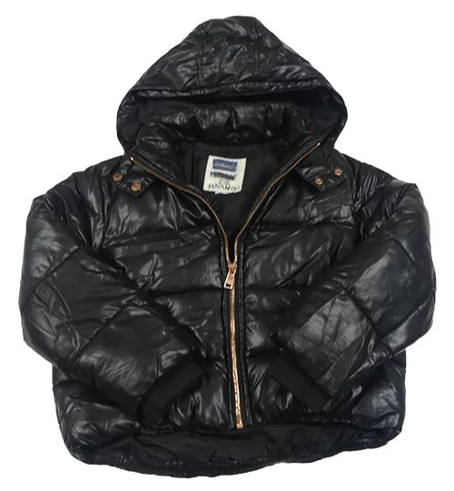 Čierna prešívaná šušťáková lesklá zimná bunda s kapucňou RIVER ISLAND