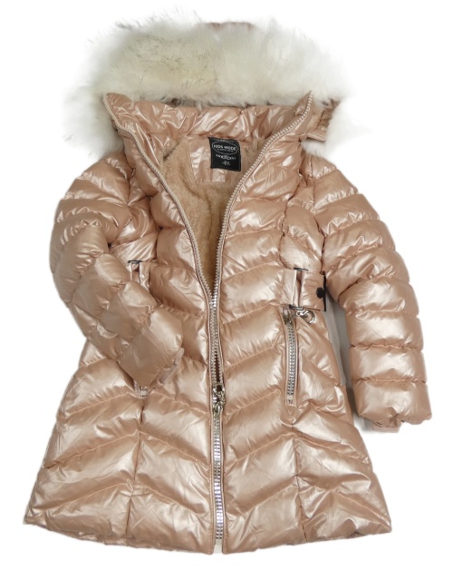Svetloružový šušťákový prešívaný zimný kabát s kapucňou