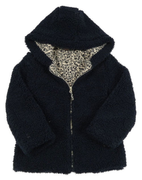 Tmavomodrá huňatá podšitá bunda s kapucňou