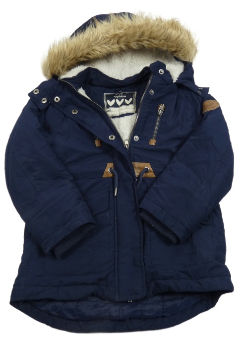 Tmavomodrá šušťáková zimná parka s kapucňou s kožešinou Topolino
