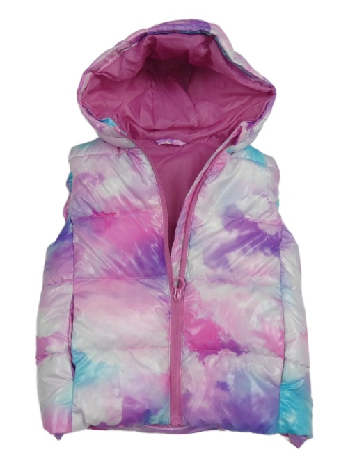 Ružovo-modrá batikovaná šušťáková zateplená vesta s kapucňou Dunnes