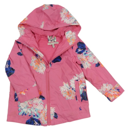 Ružová kvetovaná nepromokavá jarná bunda s kapucňou Joules