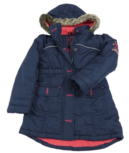 Tmavomodrý šušťákový zimný kabát s kapucňou s kožešinou Kiki&Koko