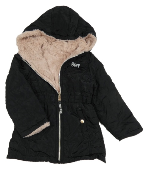 Čierna šušťáková zateplená obojstranná parka s kapucňou DKNY