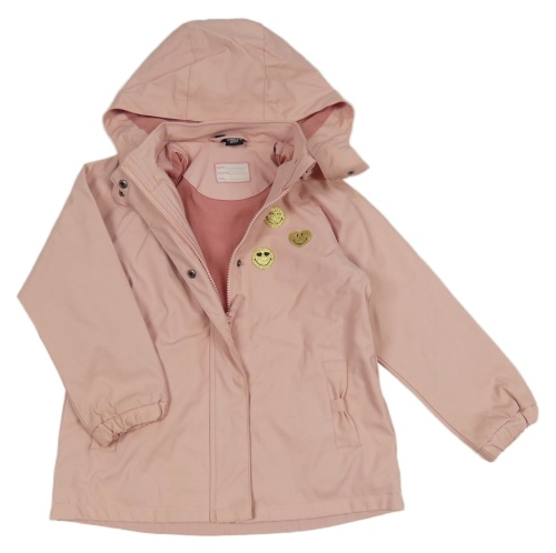Svetloružová nepromokavá jarná bunda so smajlíkmi a kapucňou