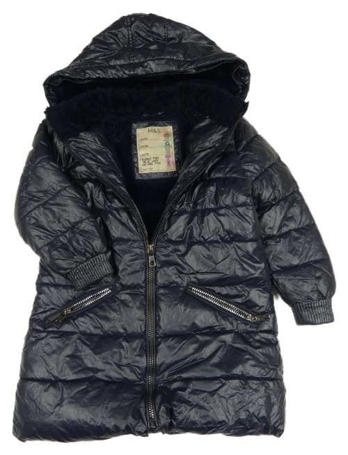 Tmavomodrý šušťákový zimný kabát s kapucňou M&S
