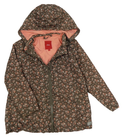 • Hnedý šušťákový jarný balonový kabát s kvietkami a odopínacíá kapucňou S. Oliver