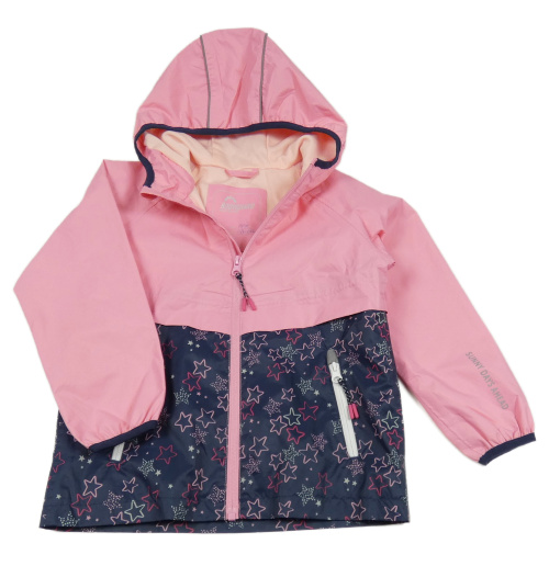 • Ružovo-tmavomodrá kockovaná šušťáková jarná bunda s hviezdičkami a kapucňou C&A