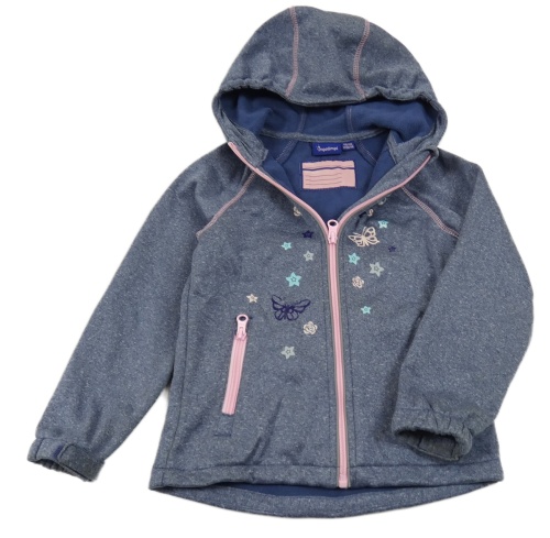 Tmavomodrá melírovaná softshellová bunda s motýly a kapucňou Impidimpi