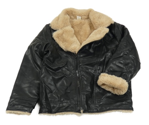 Čierny koženkový zateplený krivák s golierikom SHEIN