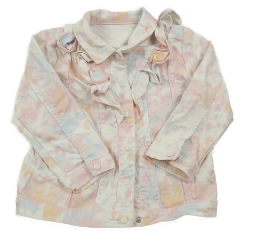 Bielo-farebná batikovaná rifľová bunda s volánikmi Matalan