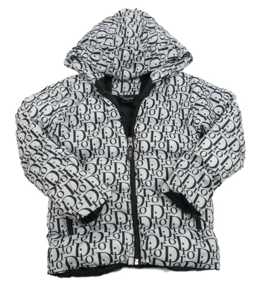 Biela šušťáková zimná bunda s nápismi a kapucí Dior