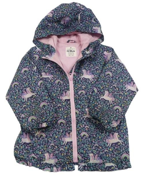 • Tmavomodrá šušťáková jarná bunda s jednorožcami a duhami a kvietkami a kapucňou Matalan