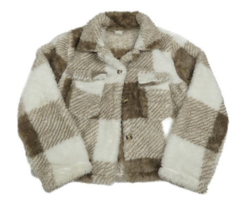 Hnedo-biela kockovaná chlpatá košeľová bunda Shein