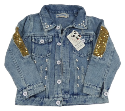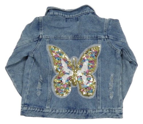 Nové - Svetlomodrá rifľová bunda s perlami a flitrami a motýlkom