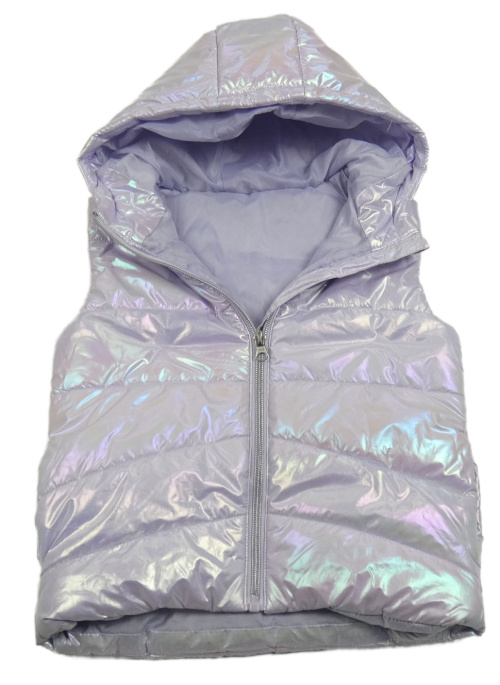 Lila metalická šušťáková zateplená vesta s kapucňou St. Bernard