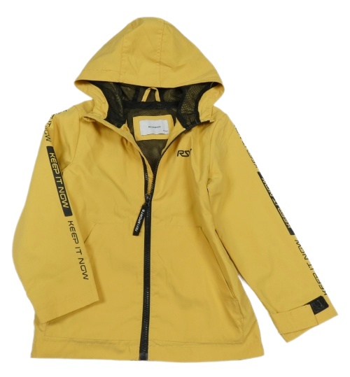 Tmavožltá šušťáková jarná športová bunda s nápisom a kapucňou Reserved