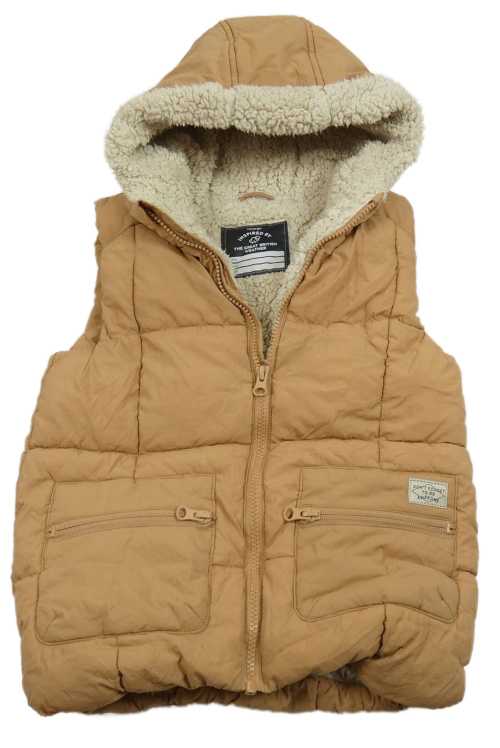 Piesková á prešívaná šušťáková zateplená vesta s nášivkou a kapucňou George