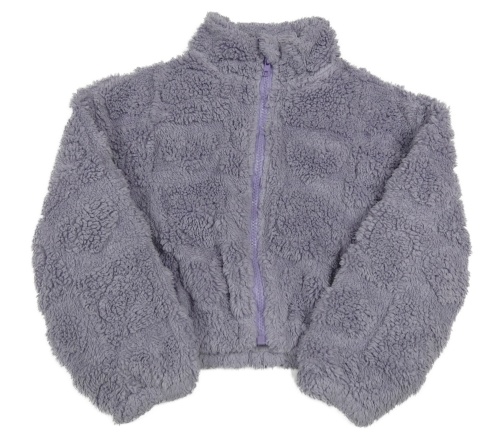 Levandulová chlpatá crop bunda so srdiečkami SHEIN