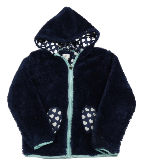 Tmavomodrá chlpatá bunda so srdiečkami a kapucňou H&M