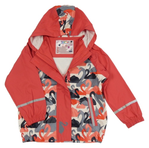 Smetanovo-jahodová nepromokavá bunda s labuťami a kapucňou lupilu