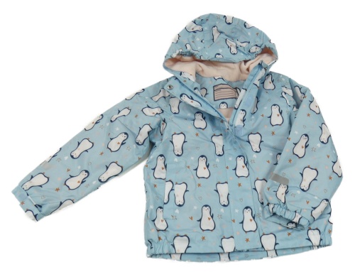 Svetlomodrá šušťáková zateplená bunda s tučňáky a kapucňou Pocopiano