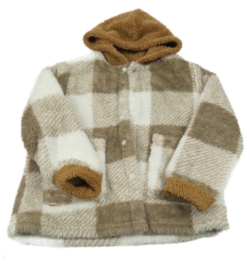 Hnedo-biela kockovaná chlpatá košeľová bunda s kapucňou Shein