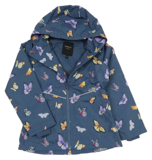 Tmavomodrá šušťáková jarná bunda s motýlikmi a kapucňou Name it