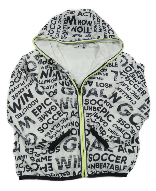 • Bielo-čierna šušťáková jarná bunda s nápismi a kapucňou