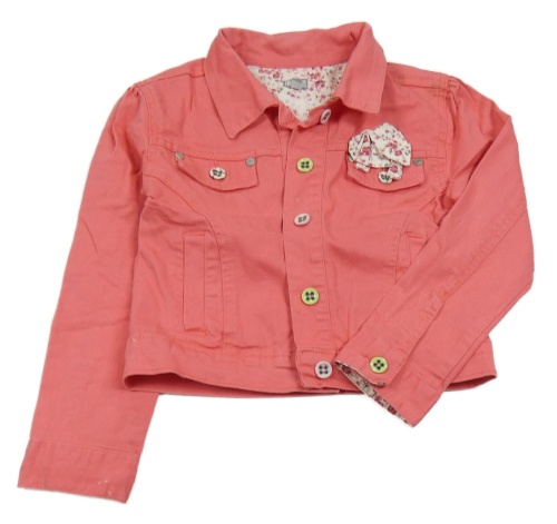 Jahodová tepláková rifľová crop bunda s mašlou a golierikom FUNKY DIVA